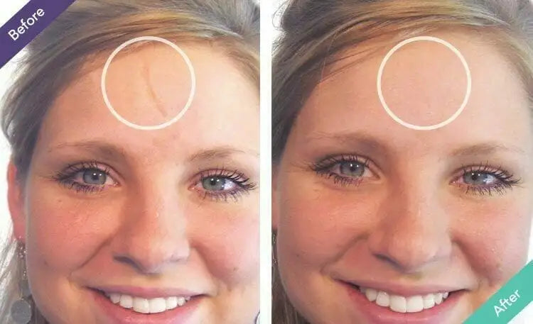 Frown lines or glabellar lines can make you look angry or worried. The most common solution is an injection. But if injections are not your thing, there is a new solution for hiding frown lines. Dermaflage is the best wrinkle filler for the frown lines because it covers the frown lines with a custom covering that matches your skin. These before after frown line photos show how to hide frown lines in minutes with a non-surgical option. Dermaflage was developed in Hollywood and now it has been simplified for everyday consumers.